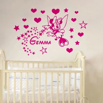 Personalized Name Girls Room Decoration Wall Stickers Minnie Mouse Custom Name Wall Decals Kids Nursery Room Decor
