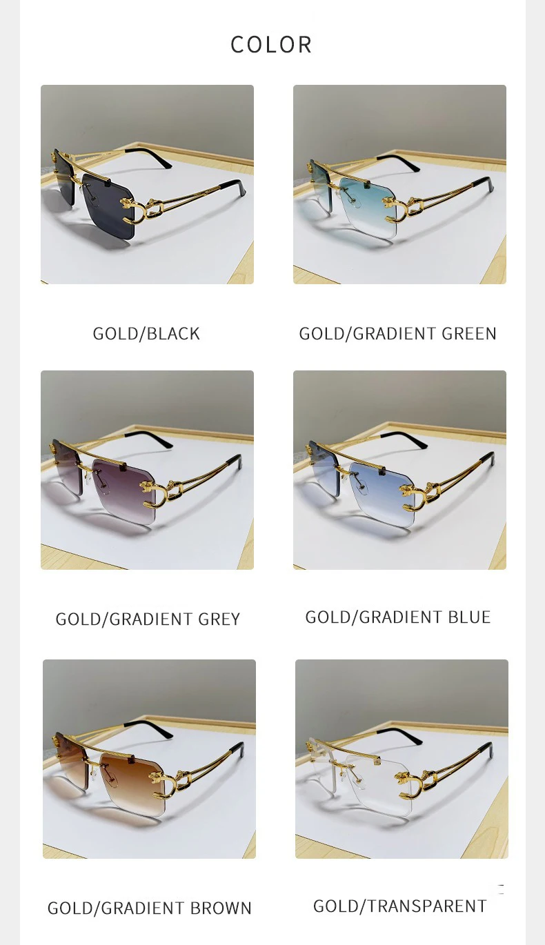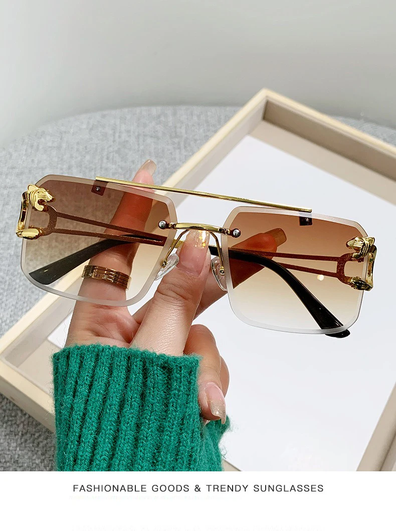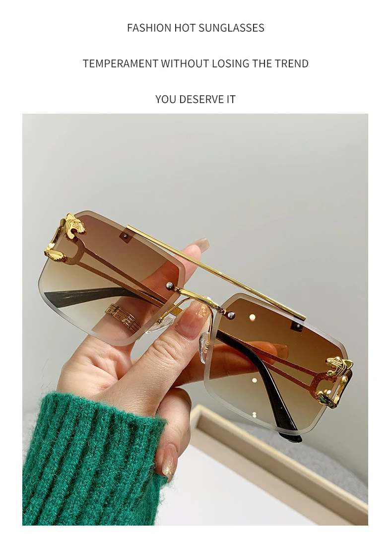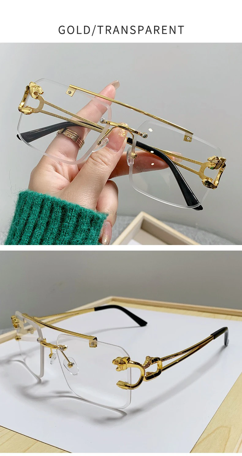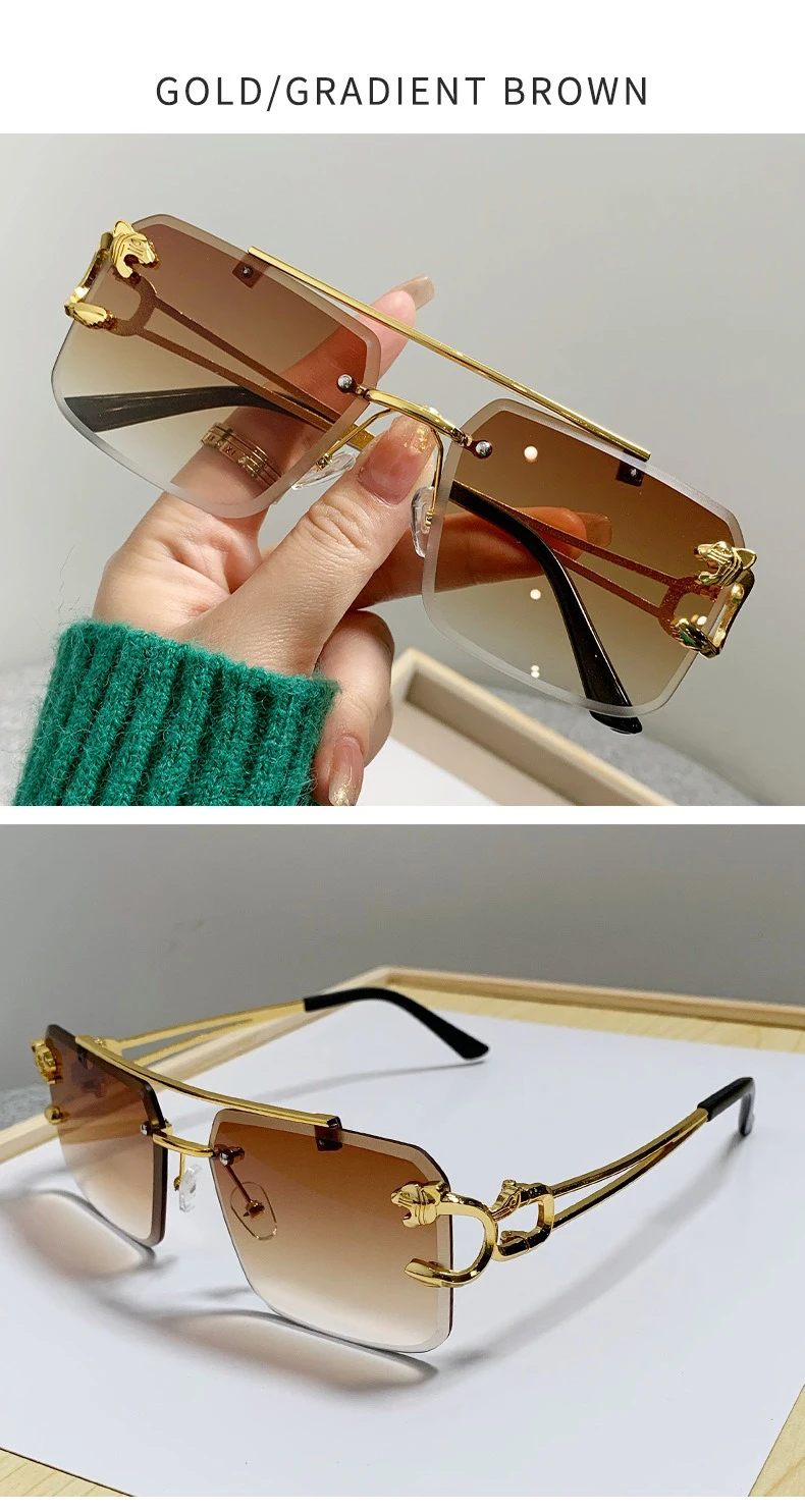 A Pair Of Frameless Diamond Cut Edge Box Cross-Border Glasses Leopard Head Sunglasses Men And Women Dual Beams Personalized Tren