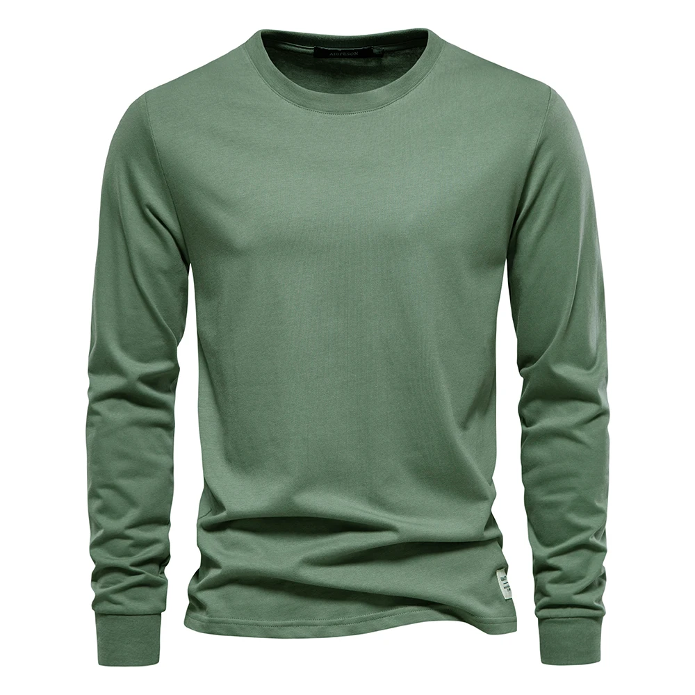 AIOPESON Solid Color Cotton T Shirt Men Casual O-neck Long Sleeved Mens Tshirts Spring Autumn High Quality Basic T-shirt Male