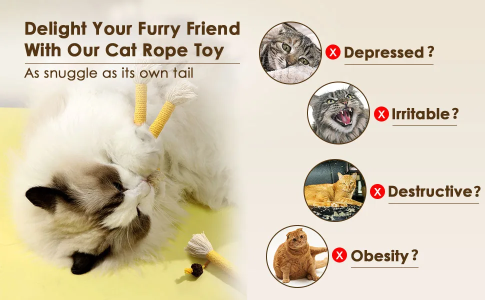 Promote Dental Health: The sisal rope used in these cat chew toys is bite-resistant, which helps clean your cat’s teeth, prevent plaque and tartar accumulation, freshen breath and promote cat’s tooth growth, making teeth cleaning a fun activity for your kitty