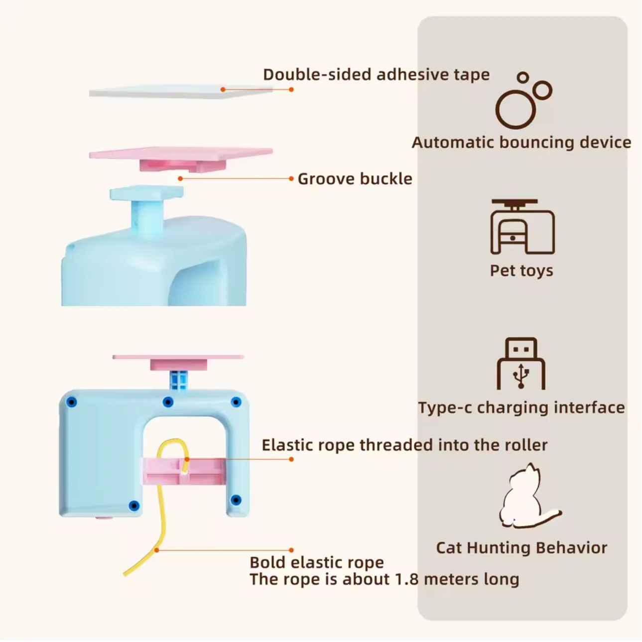 Cats Toys Pet Stress Relief Rechargeable Interactive Hanging Door Automatic Electric Flying Bird Cat Toy for Hunt Elastic Rope