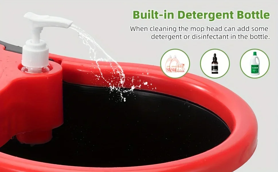 The innovative bucket features a foot-pedal operated spinner. Just place the mop head in and press the pedal for fast, hands-free wringing. No more touching dirty water! The built-in scrubber also helps clean the mop head itself.