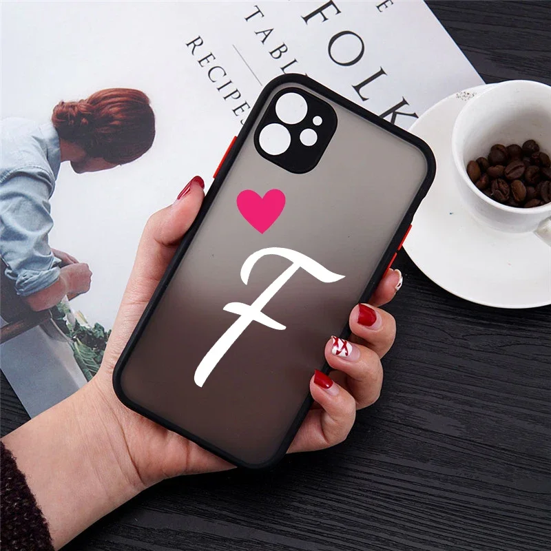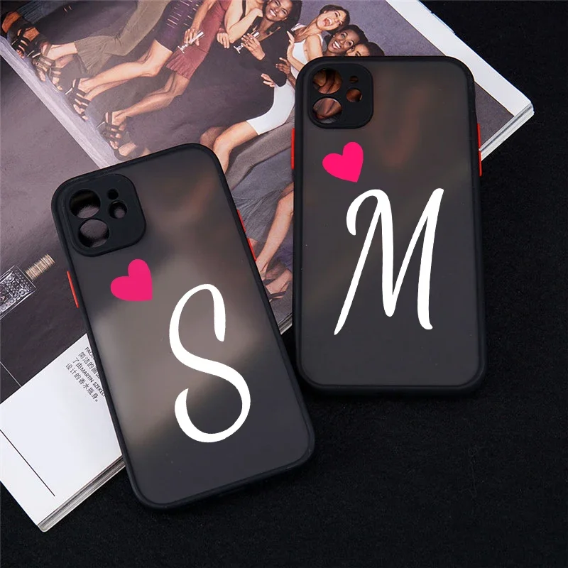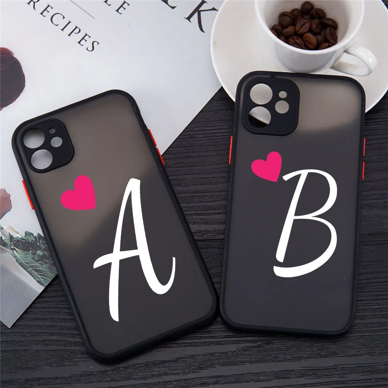 Initial Letter A Z Love Heart Couples Phone Case For iPhone 11 12 13 14 15 Pro Max Mini X XR XS 7 8 Plus Silicone Cover Fundas