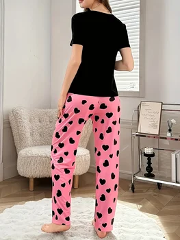 π All-over heart print: pink background with a full print of black hearts, echoing the print on the top, creating a more cohesive and unified set.