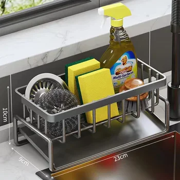 Kitchen Sink Organizer Carbon Steel with Tilted Water Tray Storage Rack for Sponge Brush 23×9×10cm