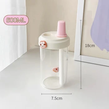 Large Capacity Pearl Milk Tea Glass Cup with Straw, Simple Design Plastic Water Bottle, Casual Style Drinkware for Daily Use