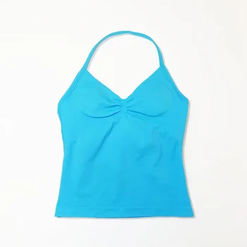 NCLAGEN Gym Longline Strappy Top Women Seamless Yoga Tank With Removable Pads V Neck Workout Clothes Sports Running Fitness Vest
