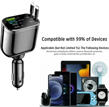 Ultra Fast Charging Five in One USB Car Phone Charger with Intelligent Digital Display and Dual PD Ports for Voltage Display