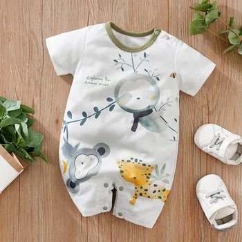 0-18 Baby Jumpsuit Cute Cartoon Animal Print Casual And Comfortable Soft Boy And Girl Summer Short Sleeved Newborn Clothes